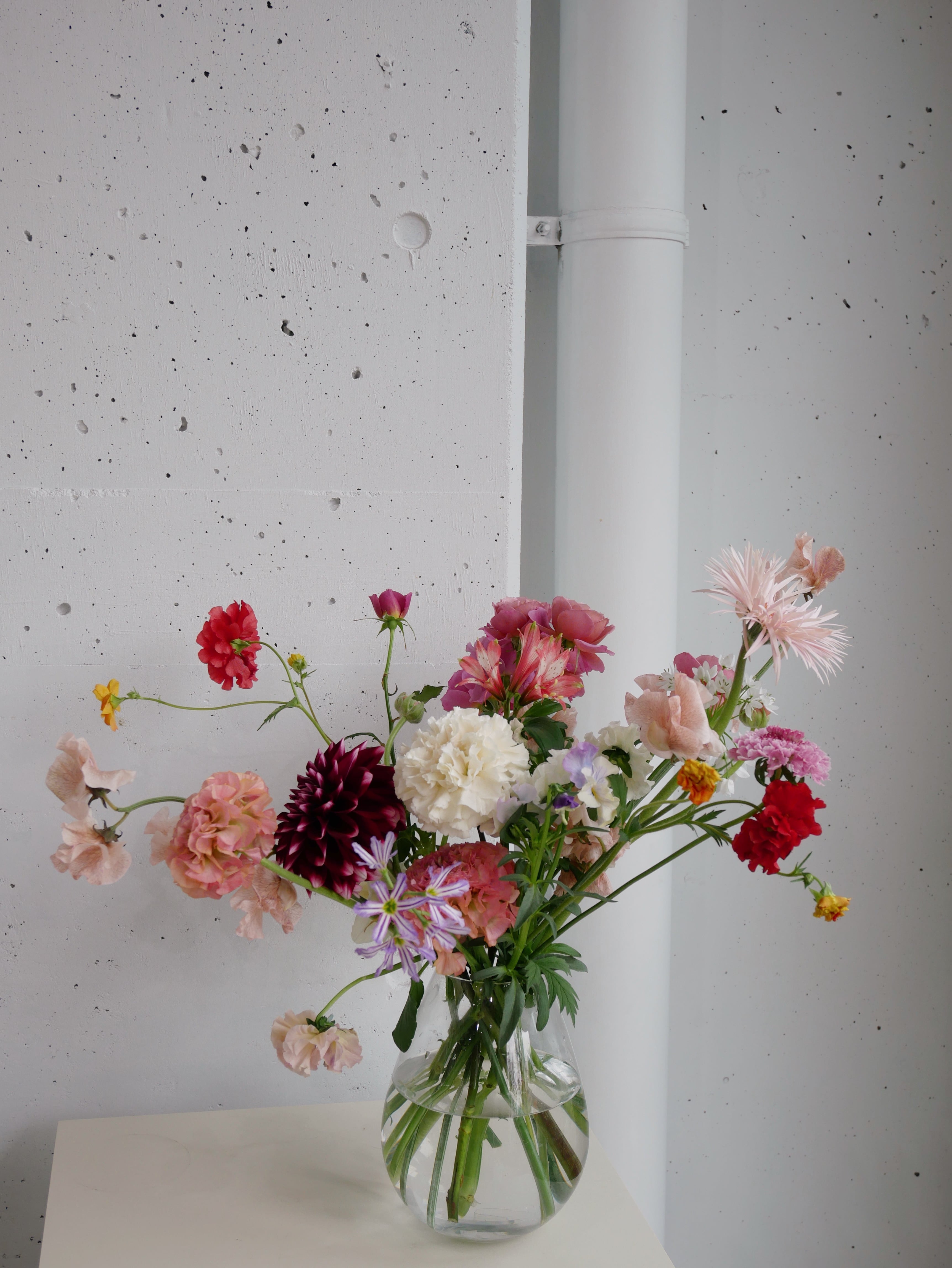 カーネーションと季節の花を沢山使って