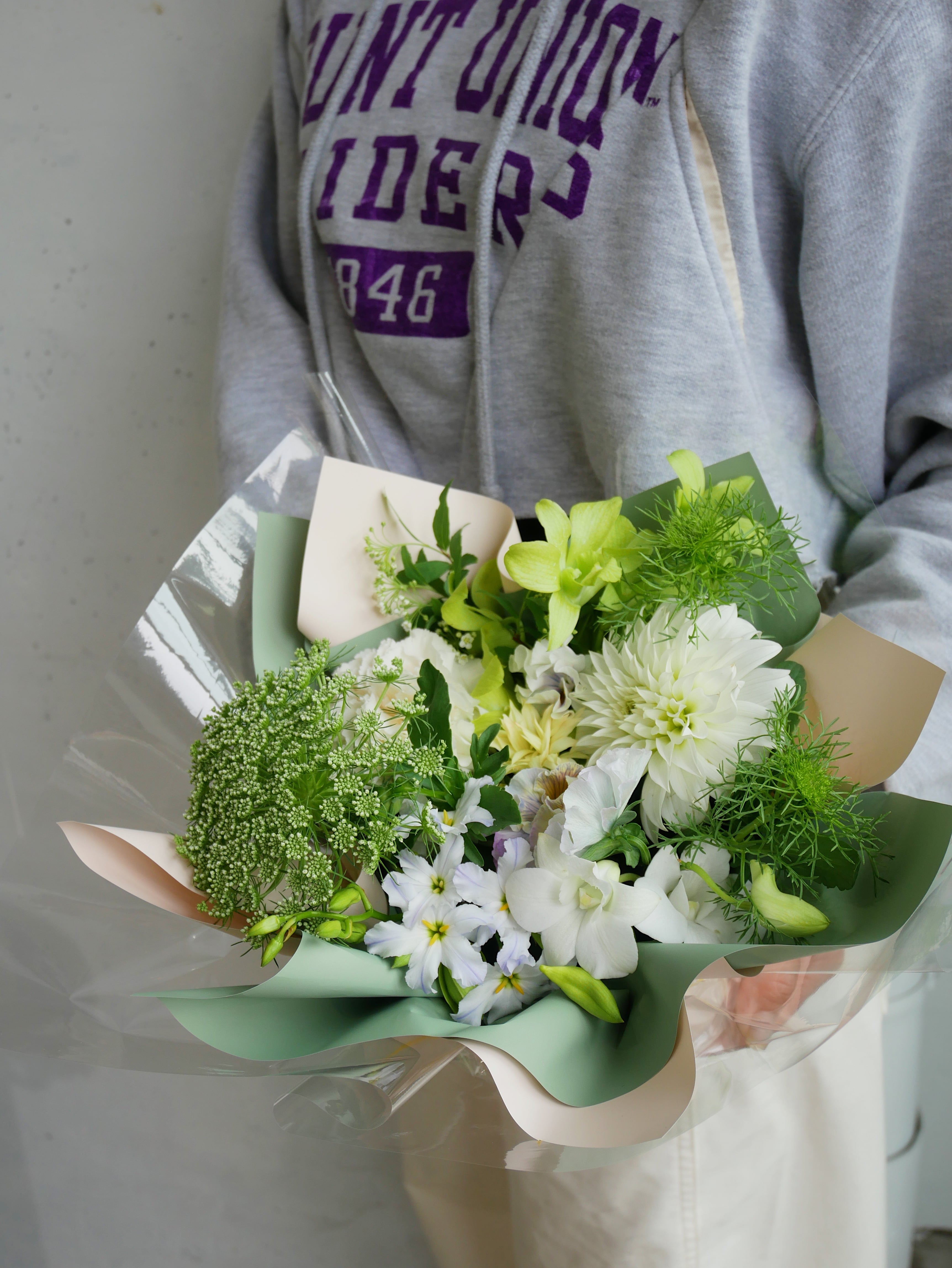 沢山のお花をいれて、華やかにお作りいたします。